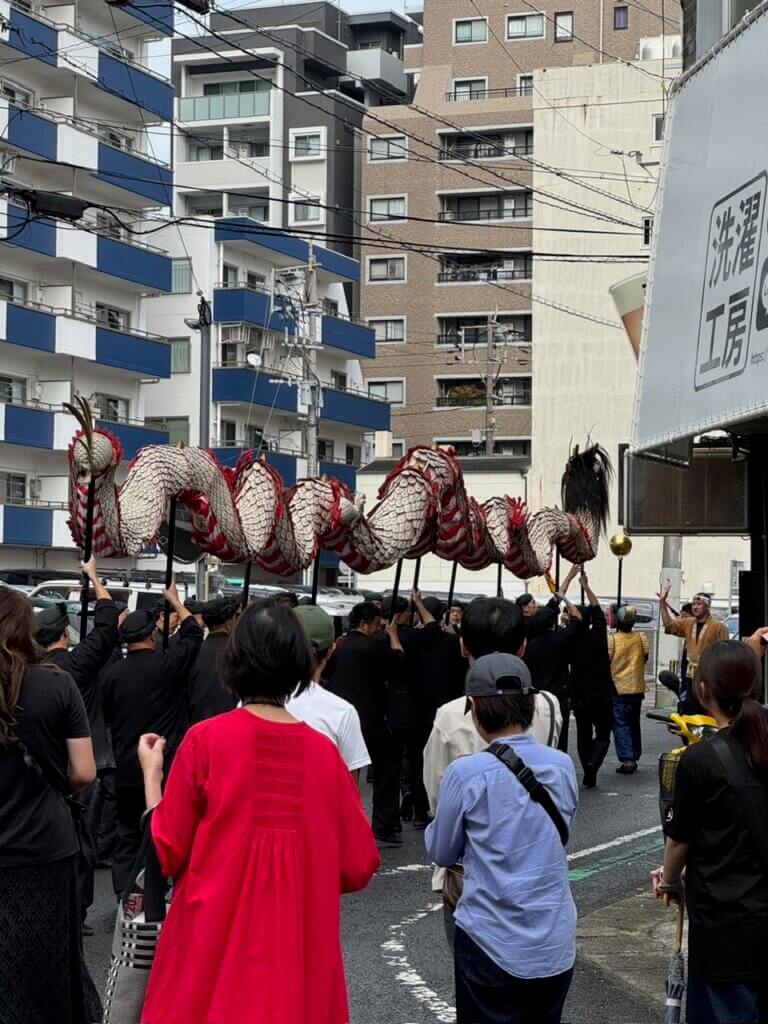 作業の途中で長崎の祭り「長崎くんち」のパレードに参加させてもらい、とても貴重な体験をさせていただくことができました!